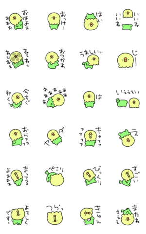 キモイ動きをするシュールなミニインコのスタンプです。eribo より発売