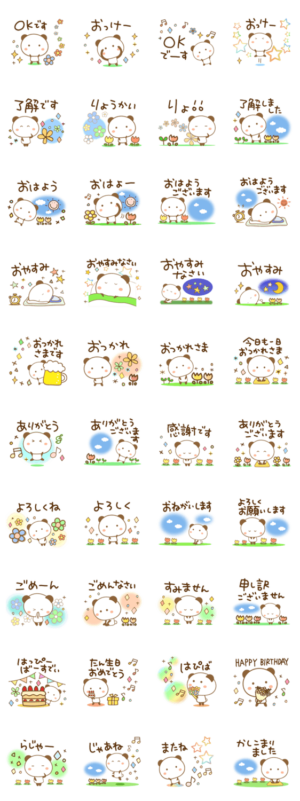 毎日使える挨拶ばかり。かわいいパンダのスタンプです。