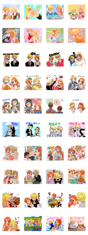 扉絵や原作シーンのサンジとナミをイラストスタンプにしました。