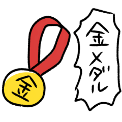 がんばる選手を応援します!金メダルのイラストのスタンプです。運動会、体育祭などスポーツの祭典をおうちでリモート応援にどうぞ!※エフェクトスタンプ版もありますめでたい⭐︎あつかまくん より発売