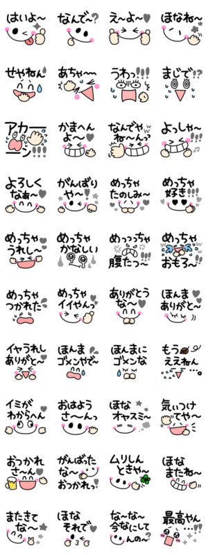 シンプルな可愛い顔文字スタンプシリーズ第三弾☆関西弁の可愛さを是非全国の大人女子へ♫ブリッとせず嫌味がないリアクションで、誰にでも使いやすいシリーズです☆