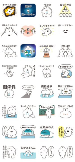 オタクうさちゃん その7 スタンプに書いてある文字一覧