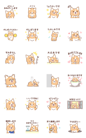 ちょっと女子力高めのコーギー犬スタンプ第5弾は、敬語・ビジネスver.!仕事・職場・学校・家族・恋人にかわいく、気遣いや応援をしたいときに使ってください♪株式会社DK より発売