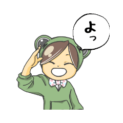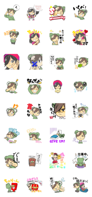 カエルのひとがわいわい騒ぐ賑やかなスタンプです。