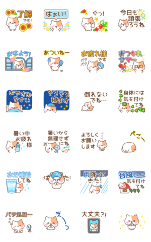 うごく♡ネコのかわいい夏スタンプ スタンプに書いてある文字一覧