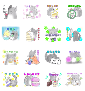 お菓子なチンチラ激かわ!サングラスしてかき氷うちわ持っているスタンプがなんか好き