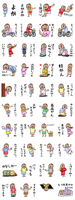 キュートなおブスちゃんが博多弁を喋ります。愛嬌があるおブスのスタンプです。Brody Machine より発売