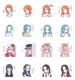 ONE PIECE(ワンピース)の強くて可愛い女の子たちのスタンプです。日常で使えるメッセージをかわいく伝えます!