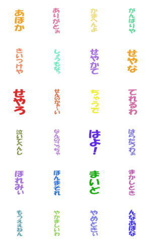 画面いっぱいにデカ文字関西弁が落下するポップアップスタンプ第二弾です。