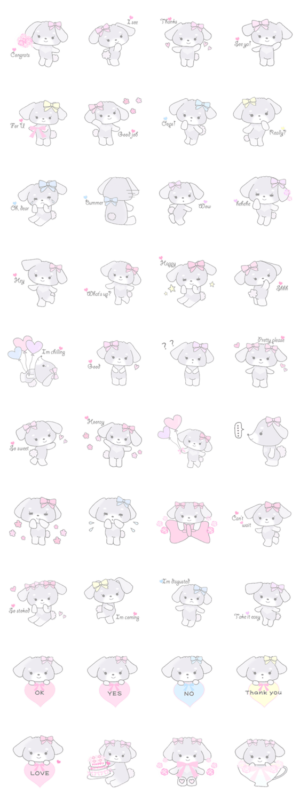 シュナのくるみちゃんの英語版スタンプできました♡ パステルカラーのゆめかわいいスタンプで、あなたの心もほんわか♡