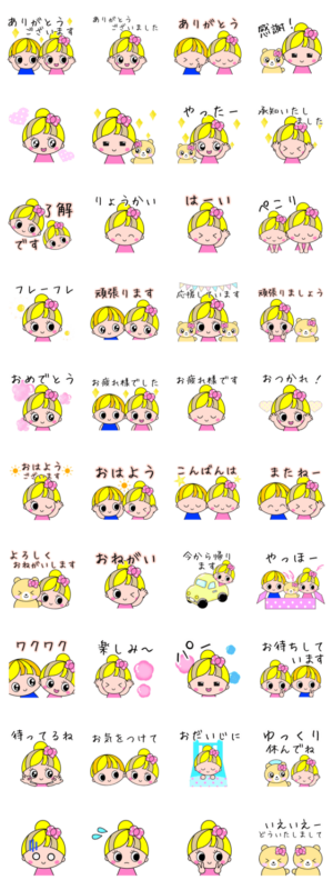 カラフルガールちゃん1♥毎日使える挨拶 スタンプ画像一覧