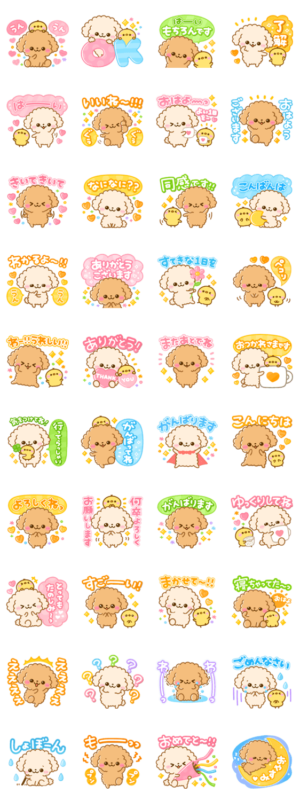 ふわふわもこもこ犬トイプードル♡モカ&ラテの毎日使える大人可愛いスタンプです。カラフルカラー