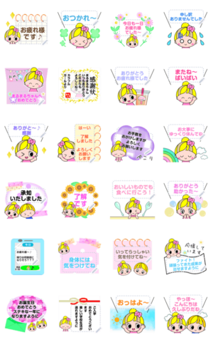 好きな文字を入力/女の子/男の子/ガール/ボーイ/敬語/丁寧語/花/フラワー/挨拶/かわいいスタンプ/承認致しました/了解です/ありがとう/お大事に/よろしくお願いします 現在この商品は一部のスマートフォン版LINE 10.3.0以上のトークルームでのみ使用できます。動作環境の最新情報はヘルプをご確認ください。mamama-chin より発売