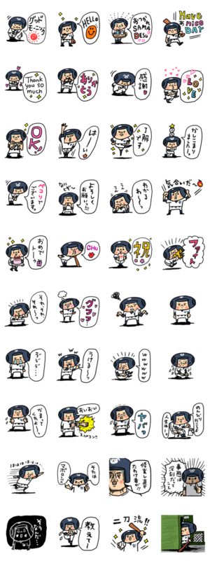 がんばれ!ベースボール 吹き出し敬語 スタンプに書いてある文字一覧