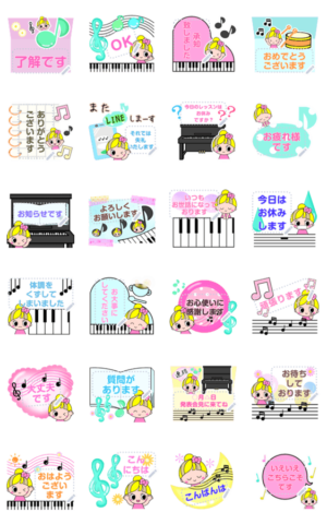 好きな文字を入力/女の子/ピアノ/音楽/敬語/丁寧語/鍵盤/挨拶/かわいいスタンプ/承認致しました/了解/ありがとう/お大事に/よろしくお願いします/お世話になっております 現在この商品は一部のスマートフォン版LINE 10.3.0以上のトークルームでのみ使用できます。動作環境の最新情報はヘルプをご確認ください。mamama-chin より発売