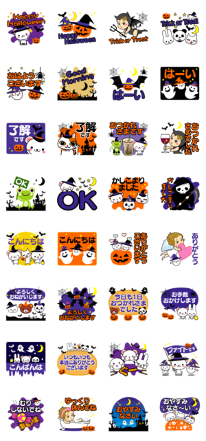 過去キャラクター大集合の作品です。ハロウィンに使える大人のスタンプ♪ グラフィックデザイナーKEN作です。KEN グラフィック より発売
