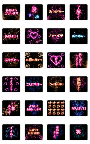 日常の挨拶や、誕生日などにも使える動くポップアップスタンプです★暑い真夏にでっかい花火を打ち上げよう!