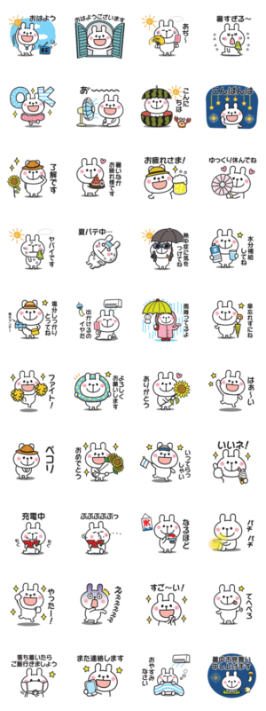 夏に毎日使える♪かわいい♡うさぎさんの夏スタンプです。よく使う日常ことばと敬語も入ってます。
