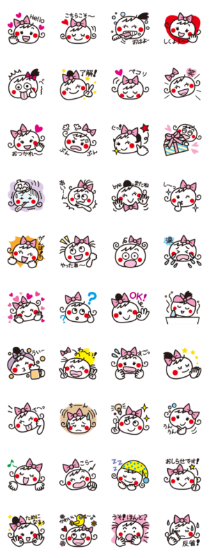 毎日使える、絵文字を大きくしたような、可愛い女の子の表情のスタンプです