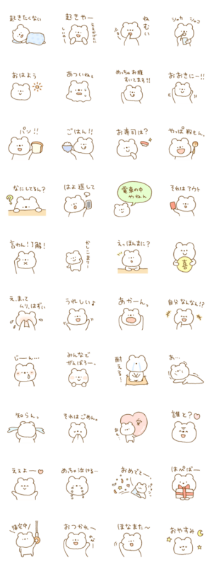 しろくまスタンプ。12【関西弁】 スタンプに書いてある文字一覧