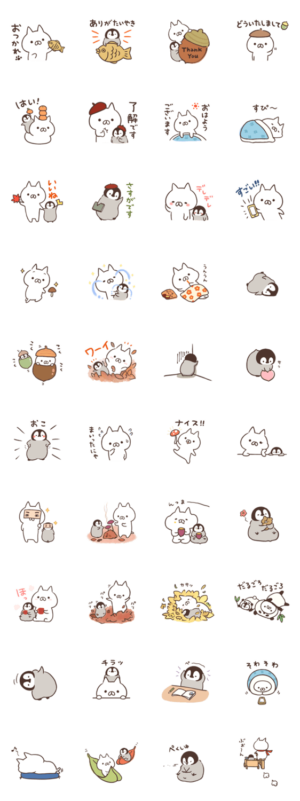ねこくんとぺんちゃんのほのぼのした日常のスタンプです。ほんのり秋編。