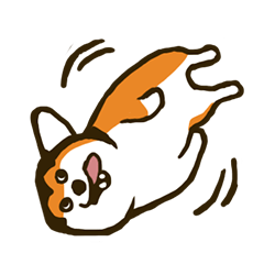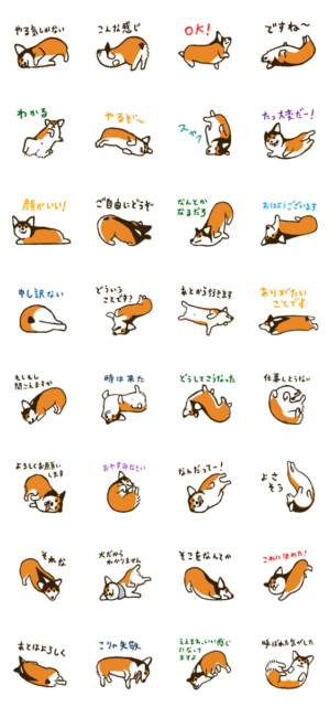 なんともほっこりする、よく転がる犬のまったりしたスタンプ。ちょっとギスギスした会話を和ませるのにピッタリ。