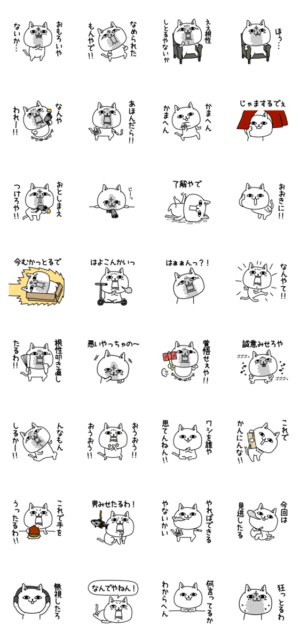 じろりねこ怖めの関西弁 スタンプに書いてある文字一覧