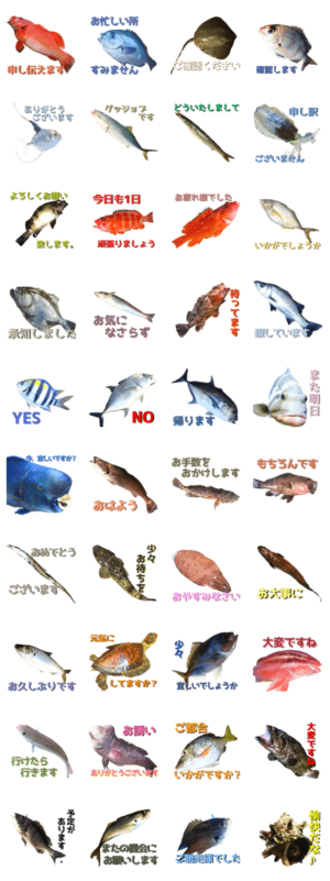 おさかながいっぱいの、日常会話で使える敬語スタンプ!海の魚が好きな人、釣り好きな人にもキモイけどちょっと可愛い、一風変わった実写です。ウミガメやサザエもいるよ!チャイロノ汚水 より発売