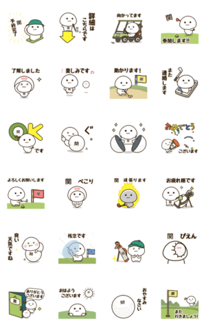 ラウンド前後の連絡を敬語で伝えるゴルフの名前スタンプ!会社,上司,友人などの挨拶,報連相にも最適☆byだいふくまる。「関,せき,かん」