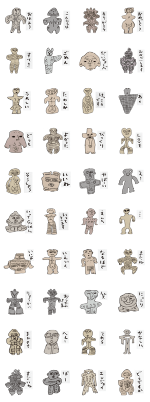 40体の縄文土偶たちのスタンプですさとうゆかり より発売