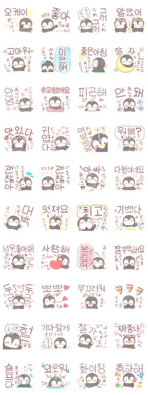 よく使うメッセージペンギン毎日使える大人かわいいゆるほのぼの子ペンギンデカ文字見やすい韓国語読み方日本語あり家族彼氏彼女カップル夫婦が使う【韓国語2もあり!】