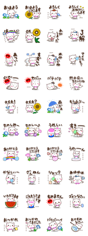 【夏】シロネコすたんぷ※カスタム スタンプに書いてある文字一覧