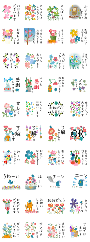 お花と鳥のスタンプ②*文字改正Ver スタンプ情報