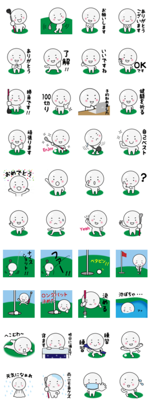 第2弾です。コミカルでかわいい、ゴルフボールくんのスタンプです。ゴルフを楽しむ方に使いやすい内容で作りました。