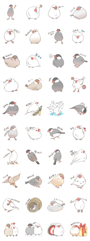 文鳥飼いのための色んな種類の文鳥を詰め込んだスタンプです。ふくふく堂 より発売