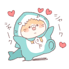 サメの着ぐるみを着たにゃんこスタンプです。かまってほしい時などにオススメです!駄菓子屋 より発売