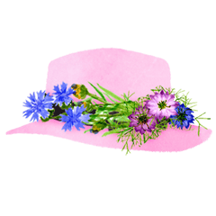 花飾りの帽子をかぶっているような、華やかな気持ちになれる、お洒落なスタンプです。タッジー工房 より発売