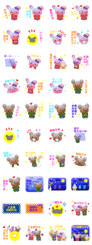 今の時期にぴったりな十五夜バージョンのスタンプです。かわいくていろんな人に使いたくなります。