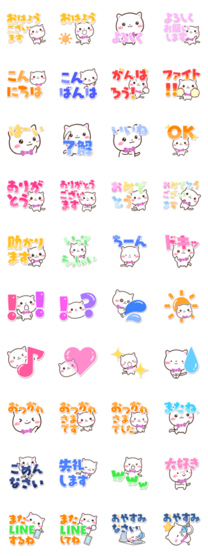 『シロネコすたんぷ』から選びやすく使いやすい【デカ文字】編です。よく使う言葉や、あいさつ等、便利な白猫スタンプです。ねこ好きな方にぜひ。【かたこ】