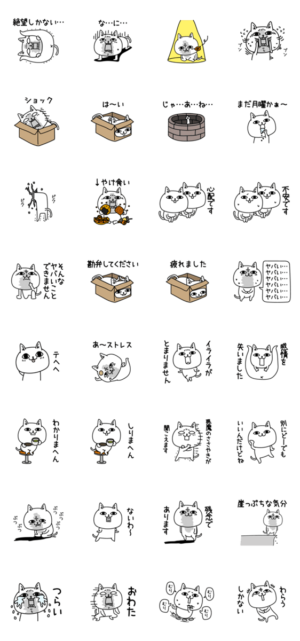 じろりねこ絶望虚無 スタンプに書いてある文字一覧