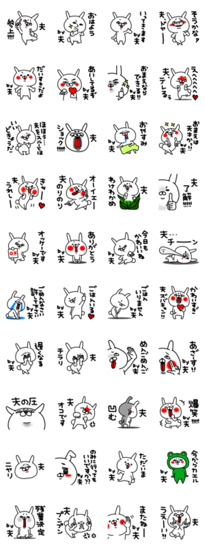 父・旦那様・パパ専用スタンプ。 うさぎがあたなの気持ちを代弁。 家族(ママ・嫁・奥さへ)の連絡用に便利です。 デカ文字で使いやすい。cosotto より発売