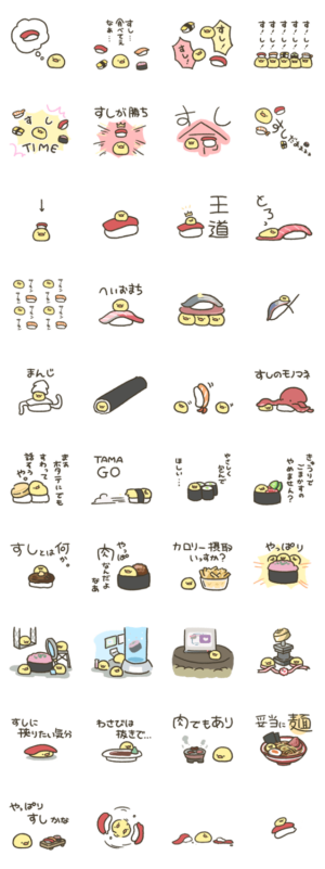 まんまるなひよことお寿司のスタンプです。かわいいひよこ達の姿に癒されましょう!!