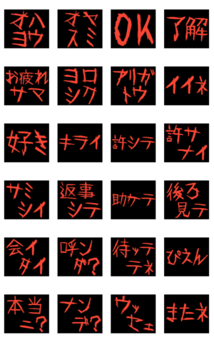 【ポップアップスタンプ】ホラースタンプ/怖い/恐怖/寒い/オバケ/幽霊/鬼/驚く/血/閲覧注意/グロい/呪い/砂嵐/術/煽り/滅したい/カオス/メンヘラ/地雷/面白い/ぴえん