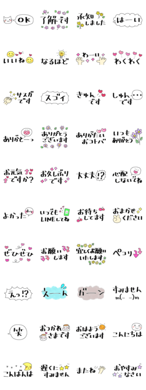 文字が大きくて見やすい、シンプルで使いやすい40個。大人かわいい優しいスタンプです。