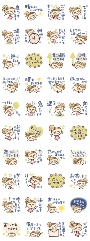 会うおやくそく専用♡敬語 スタンプに書いてある文字一覧