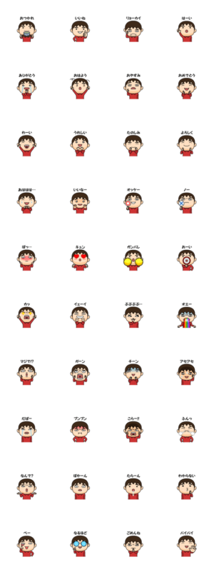 芋ジャージ男子スタンプ『エモーション』の第1弾。絵文字風でいろんな表情が詰め込まれた基本編。くーが より発売