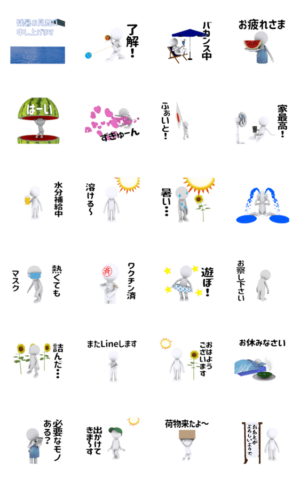 プレゼンやブログで見かける白いやつの夏バージョン。日常に使える踊るしろい人の動くスタンプ第二弾,3dヒューマン,3Dホワイトマン,ピクトマン