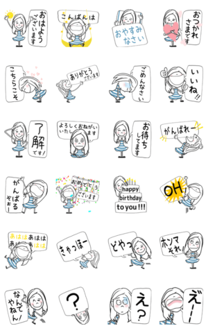 大人気☆ロングヘアの女の子キャラクターの飛び出す吹き出しポップアップスタンプ!色んな場面で毎日使える日常ど定番!シンプルなPOPUPスタンプです♪edacchi