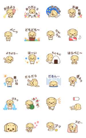 ゴールデン・レトリバー(ゴールデン・レトリーバー)の赤ちゃんの動くスタンプです!可愛い動きで心もほっこり♪DECOR より発売