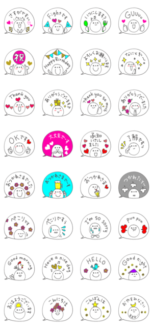 大人のシンプルセットです。おはよう/おやすみ/ありがとう/よろしく/おつかれ/了解/などいくつあってもうれしいスタンプです。